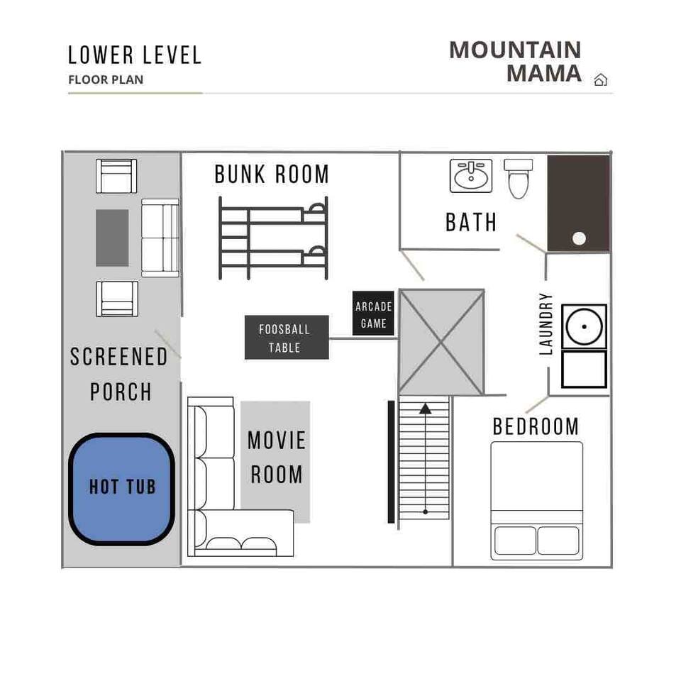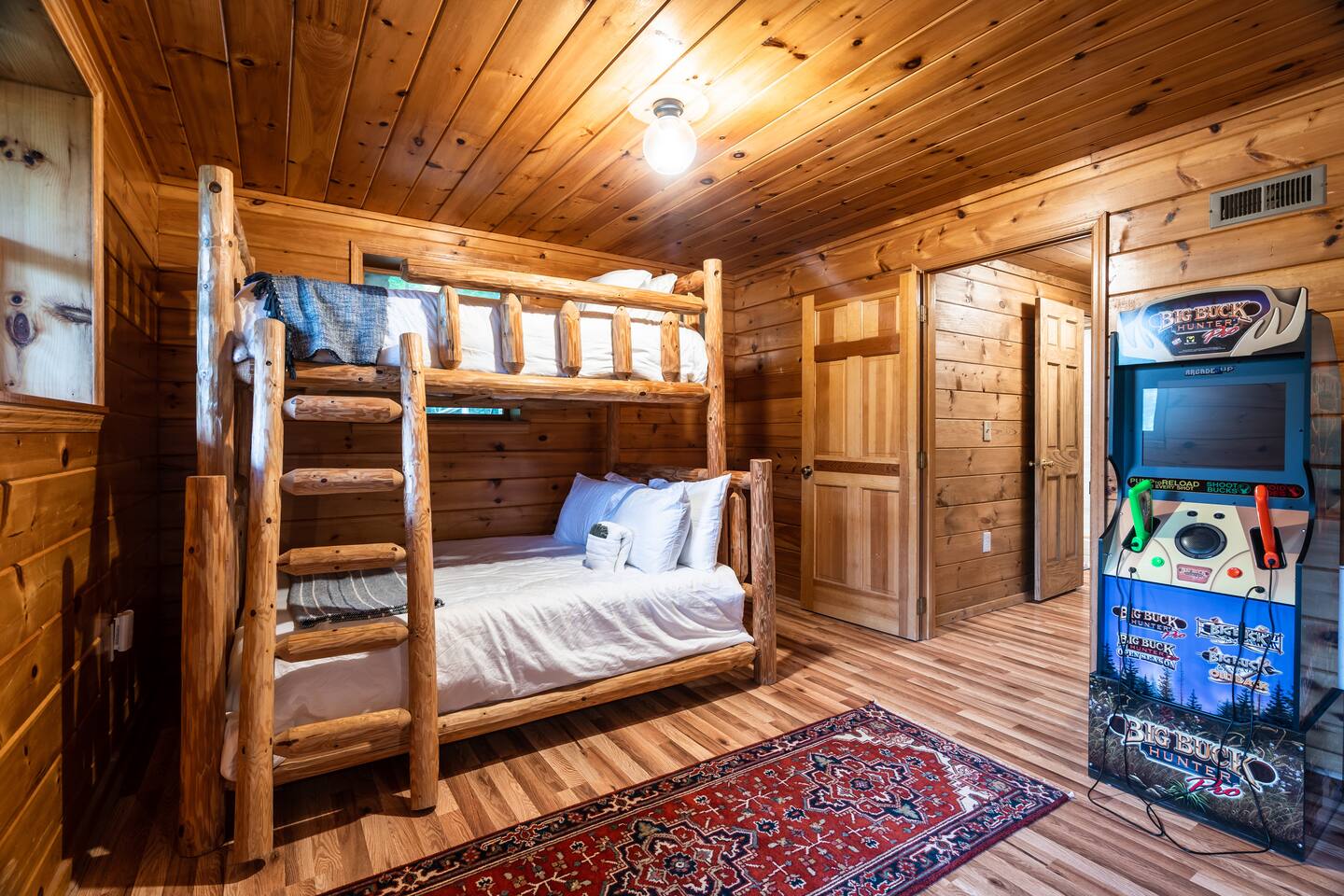 Mountain Mama cabin lies in the Chattahochee-Oconee National Forest. The cabin is in THE BEST location possible, just 15-minutes from Blue Ridge and Ellijay! This allows for you to easily visit both the awesome mountain towns during your stay! Mama is a secluded and private sanctuary, w/ 3 bedrooms + a bunk room (equipped with a sweet arcade game😎), 3 modern spa-like bathrooms, a fully stocked kitchen, an awesome hot tub, and a movie room! She also has a full house generator (very important!!).